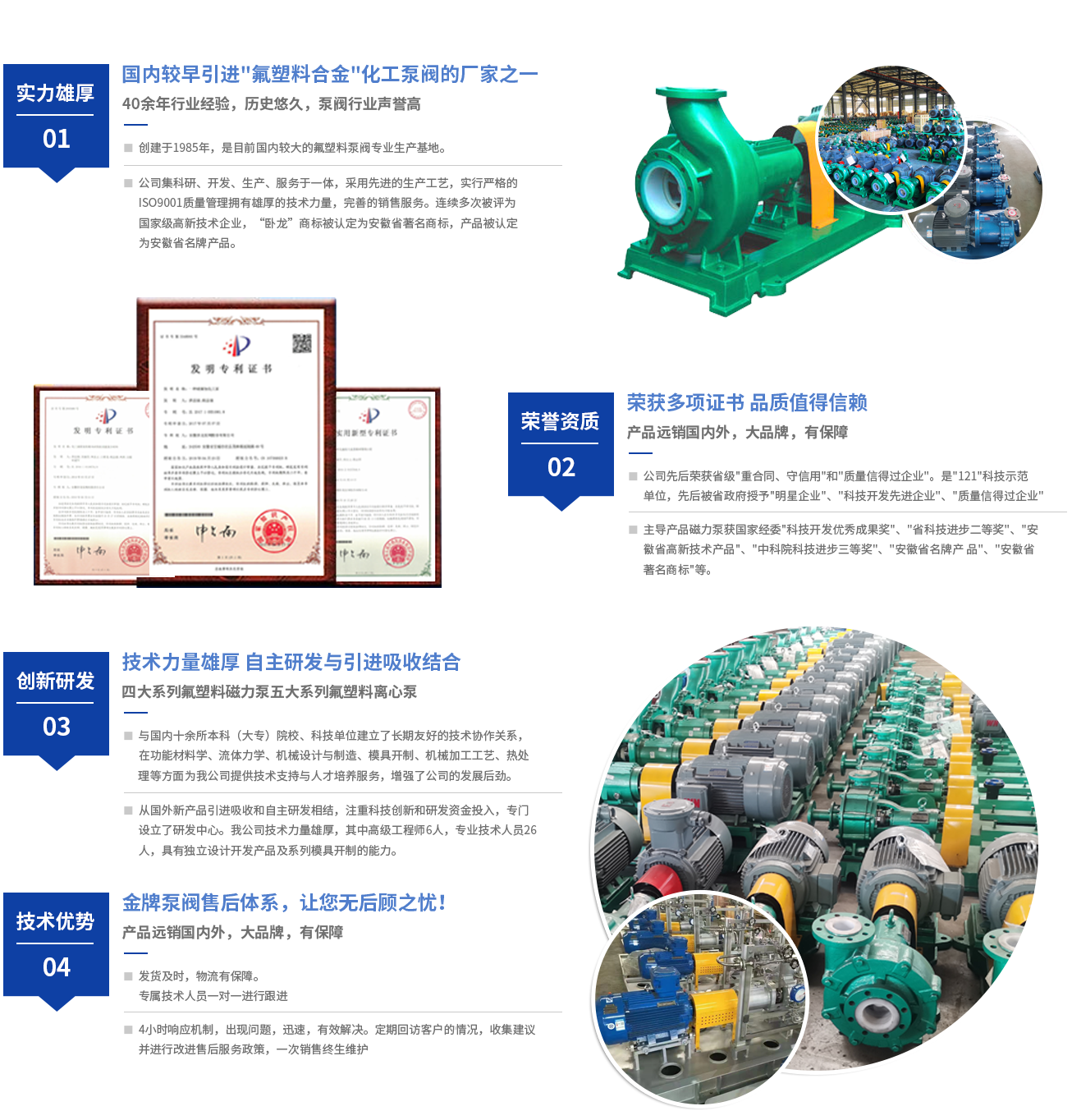 ??安徽臥龍泵閥股份有限公司前身涇縣氟塑料制品廠創(chuàng)建于1985年,是國(guó)內(nèi)較早引進(jìn)中科院上海有機(jī)化學(xué)研究所專利材料——"氟塑料合金",并以此耐腐蝕材料專業(yè)生產(chǎn)制造化工泵、閥、襯氟管道等產(chǎn)品的企業(yè)。公司經(jīng)過(guò)歷次的改制變革,2015年更名為安徽臥龍泵閥股份有限公司。